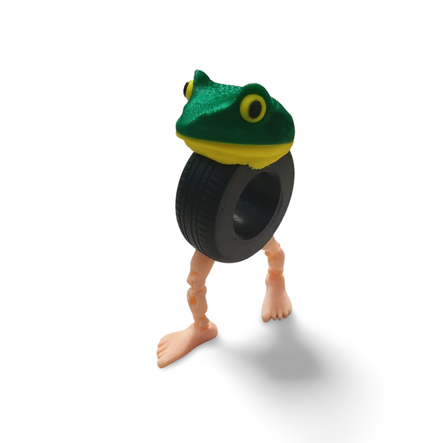 Figura impresa en 3D inspirada en el personaje viral del universo brainrot. Con una apariencia híbrida entre rana y neumático, y piernas humanas, esta figura de 17 cm está hecha en PLA de alta calidad. Ideal para coleccionistas y aficionados a los memes absurdos.